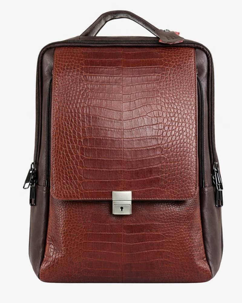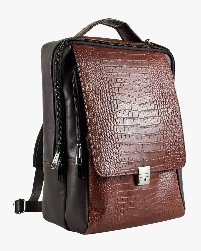 Two-tone Croc-Embossed Commuter Brown